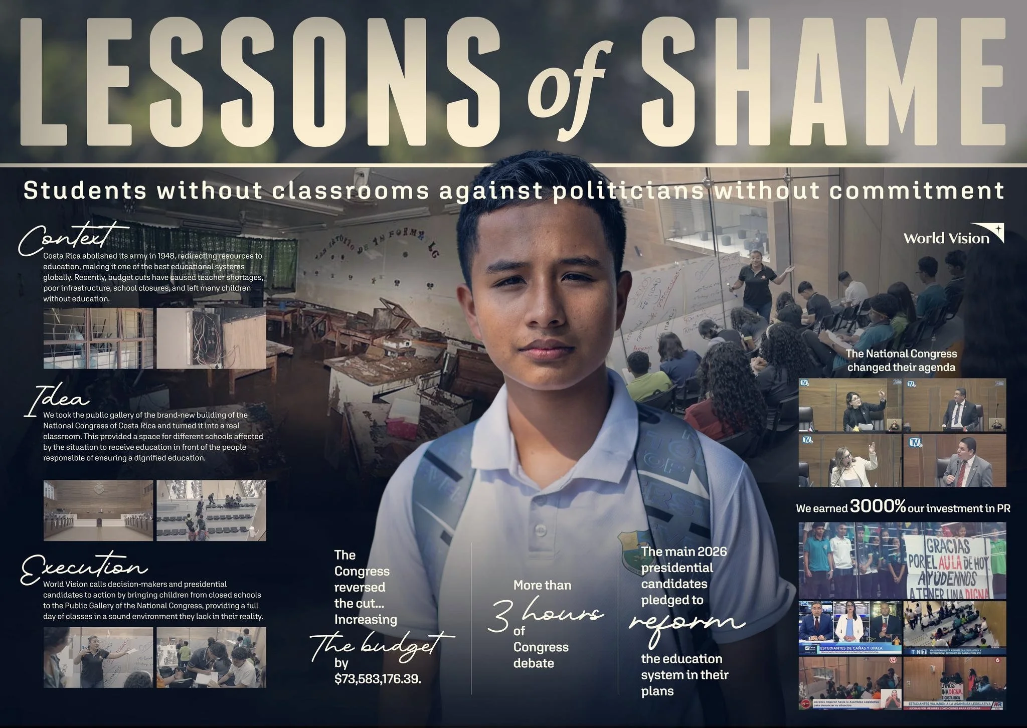 In 1948, Costa Rica abolished its army and redirected billions to education. Despite this, many schools were shut down by the Ministry of Health, leaving some communities without any access to education. On the first day of school, World Vision organized a symbolic action by turning the public gallery of the new Congress building into a classroom for affected students. The event sent a strong message. It made politicians uncomfortable, pushed education to the top of the national agenda, and forced a public debate. Instead of budget cuts, the government increased investment in education. A presidential candidate later declared it a national priority. It was 60 minutes of class that changed everything.
