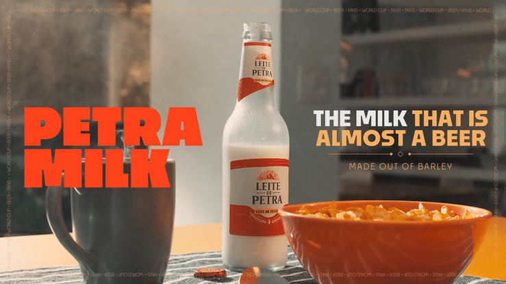 Petra milk is a vegetable drink made with the same barley, beer scent, and longneck bottles that we use to brew Petra Beer. It is a product created to hack Brazilian media legislation and World Cup regulations.