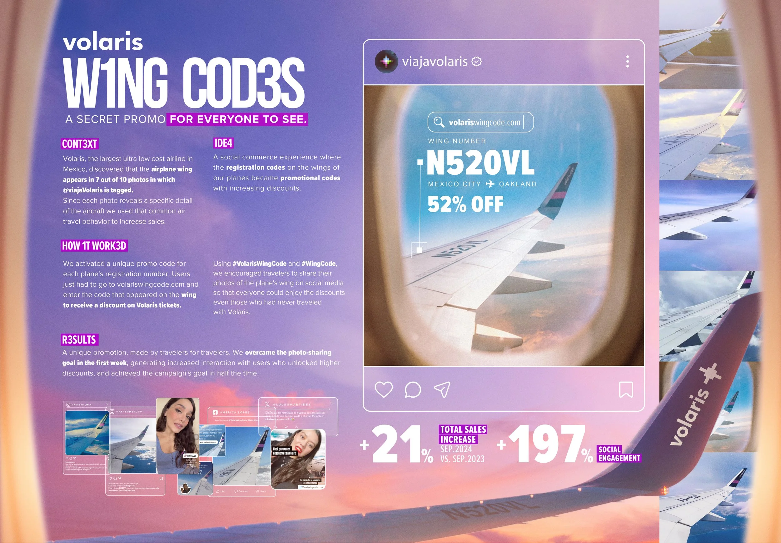 With the challenge of boosting sales but no budget for media, Volaris, the largest low-cost airline in Mexico, turned to a common traveler habit: taking photos of the airplane wing. This simple gesture was transformed into a social commerce experience, making passengers the stars of the campaign.